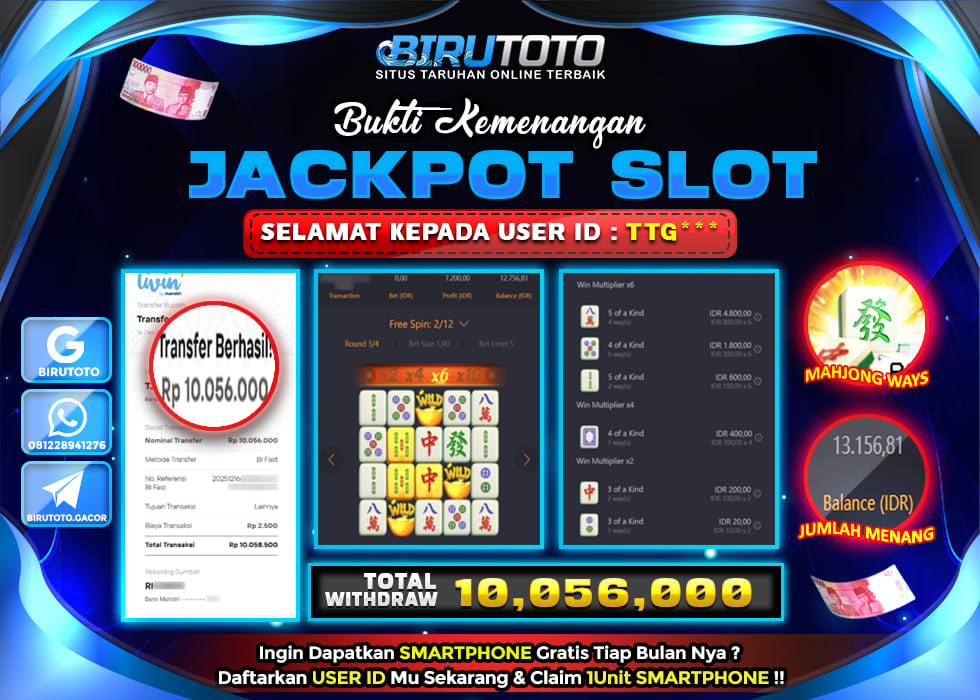 BIRUTOTO JACKPOT SLOT MAHJONG WAYS Rp.10.056.000 LUNAS