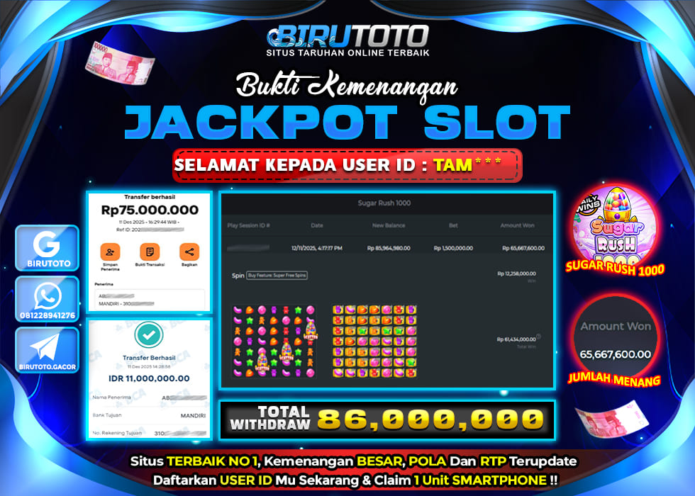 BIRUTOTO JACKPOT SLOT SUGAR RUSH 1000 Rp.86.000.000 LUNAS