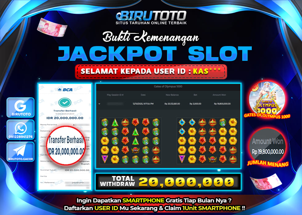 BIRUTOTO JACKPOT SLOT GATES OF OLYMPUS 1000 Rp.20.000.000 LUNAS