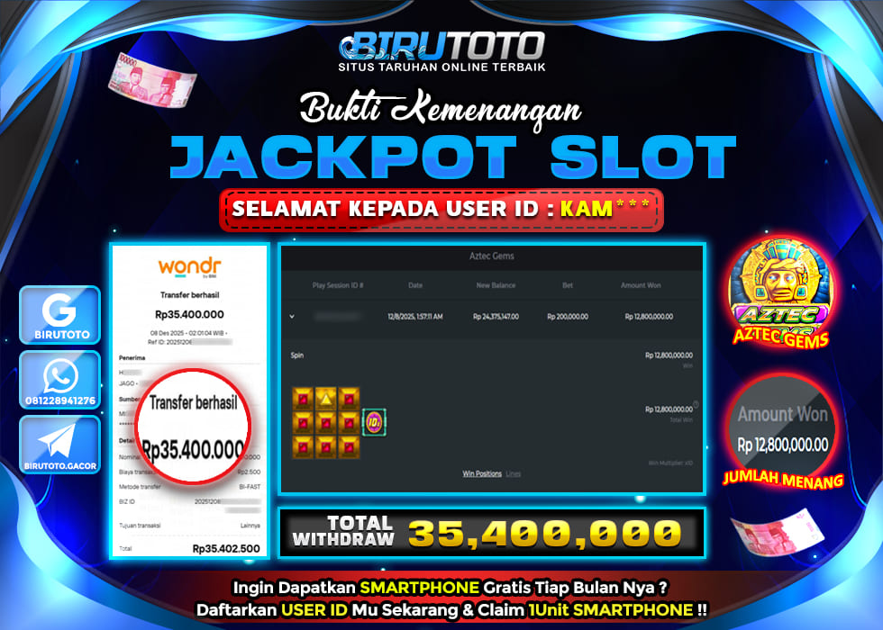 Selamat Kepada Member BIRUTOTO KA**** Telah Jackpot Di SLOT AZTEC GEMS