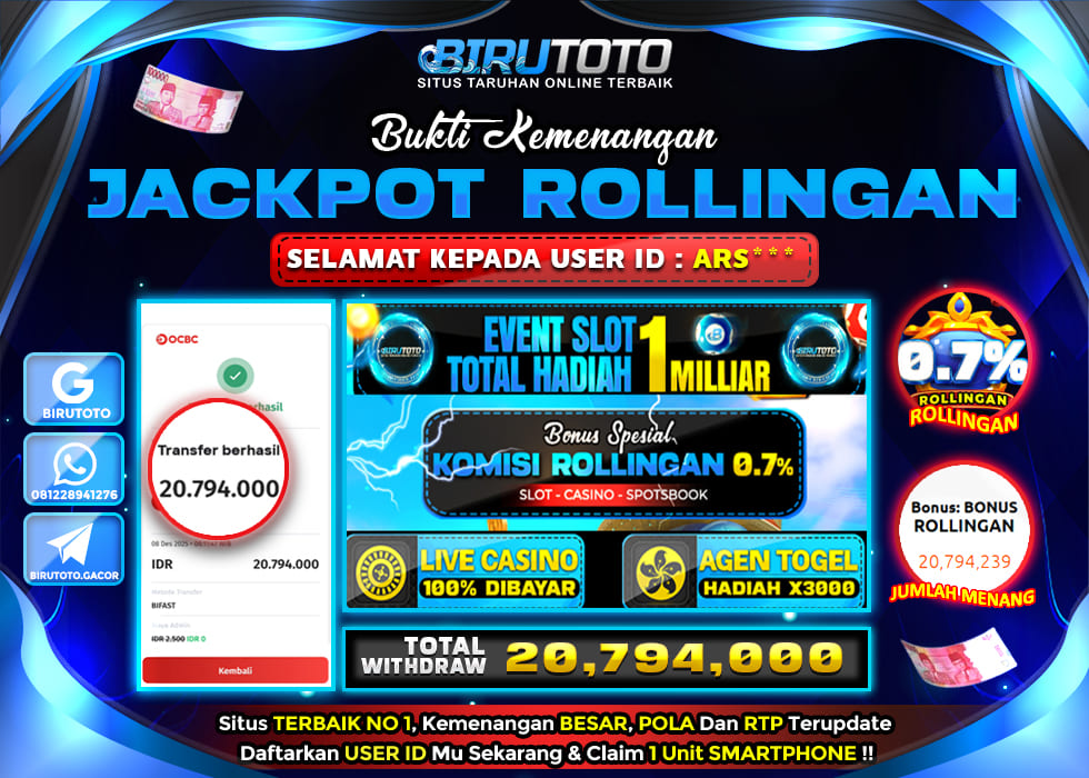 BIRUTOTO JACKPOT BONUS ROLLINGAN Rp.20.794.000 LUNAS