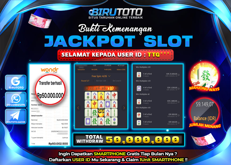 BIRUTOTO JACKPOT SLOT MAHJONG WAYS Rp.50.000.000 LUNAS